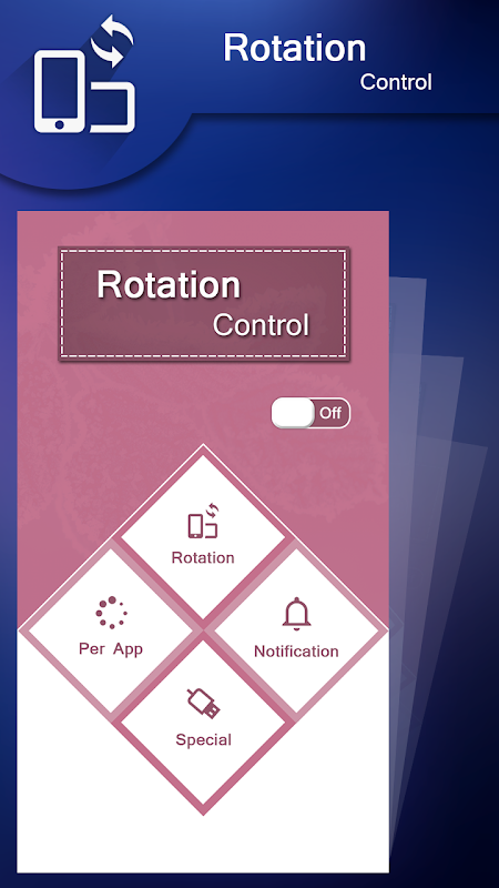Rotation Control is controllable in the app or status bar.When you run a specific app, the auto-run feature automatically launches the app to control the screen rotation when a specific app is launched.