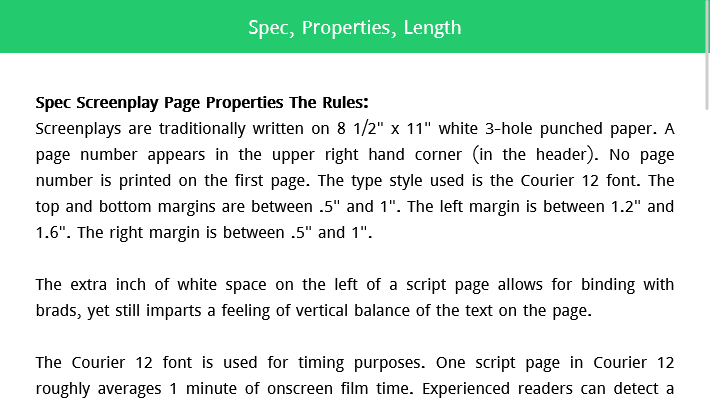 - বিশেষত্ব, চিত্রনাট্য, পৃষ্ঠা, বৈশিষ্ট্য এবং স্ক্রিপ্ট দৈর্ঘ্য