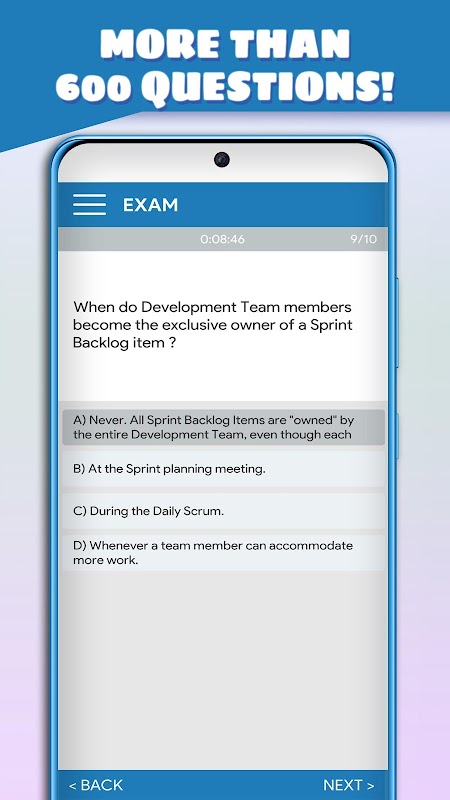 "স্ক্রাম টেস্টার" ডাউনলোড করুন এবং স্ক্রাম পরীক্ষার সাথে নিজেকে পরিচিত করুন। আপনি যে কোন জায়গা থেকে এবং যে কোন সময় আমাদের অ্যাপ্লিকেশন ব্যবহার করতে পারেন। আপনি যদি স্ক্রাম সার্টিফিকেশন পাওয়ার ব্যাপারে সত্যিই সিরিয়াস হন বা ফ্রেমওয়ার্ক সম্পর্কে জানতে চান তাহলে আপনাকে অবশ্যই ডাউনলোড করতে হবে। ধারাবাহিক থাকুন এবং স্ক্রাম আয়ত্ত করতে ঘন ঘন অ্যাপটি ব্যবহার করুন!