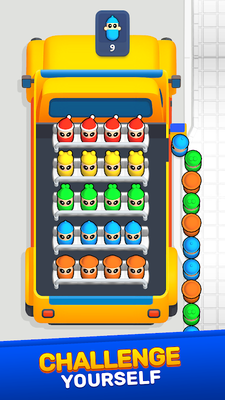 আসন সাজানো একটি মজার এবং আকর্ষণীয় ধাঁধা খেলা! সমস্ত রং একই আসনের সারিতে না হওয়া পর্যন্ত আসনগুলিতে রঙিন ছেলেদের সাজানোর চেষ্টা করুন। আপনার মস্তিষ্ক ব্যায়াম করার জন্য একটি চ্যালেঞ্জিং কিন্তু শিথিল খেলা!