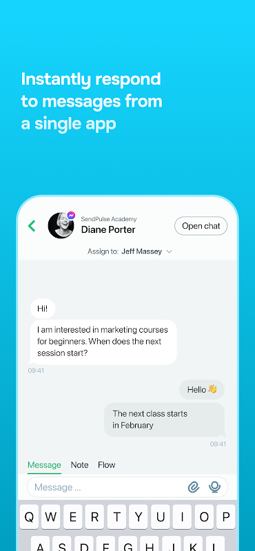 প্রতিটি গ্রাহকের জন্য একটি ব্যক্তিগতকৃত পদ্ধতি ব্যবহার করতে বার্তা ইতিহাস এবং গ্রাহক তথ্য দেখুন। সমস্ত ডিভাইস জুড়ে তথ্য দ্রুত সিঙ্ক হয়।