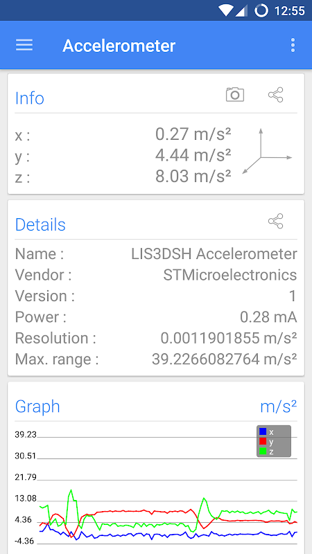এতে রিয়েল টাইমে তথ্য সরবরাহকারী সমস্ত অ্যান্ড্রয়েড সেন্সরগুলির জন্য সমর্থন রয়েছে।