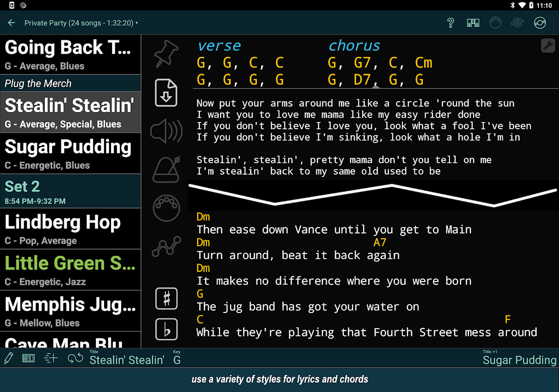 সেট লিস্ট মেকার আপনার গানের কথা এবং কর্ড চার্ট সংরক্ষণ করতে পারে, তবে এটি আপনার রিহার্সাল নোটগুলির ট্র্যাকও রাখতে পারে এবং আপনার সমস্ত সেট তালিকার সংরক্ষণাগার হিসাবে কাজ করে। আপনি প্রতিটি গানের জন্য একাধিক নথি এবং রেফারেন্স রেকর্ডিং অন্তর্ভুক্ত করতে পারেন। তারপরে আপনি যে প্রতিটি সেটিংসে খেলছেন তার সবচেয়ে গুরুত্বপূর্ণ তথ্য দেখানোর জন্য আপনার নিজস্ব স্ক্রীন লেআউট ডিজাইন করুন।