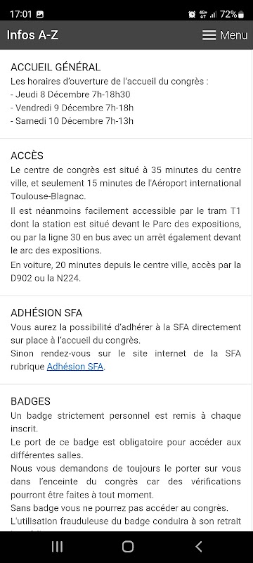 এই অ্যাপ্লিকেশনটি ডাউনলোডের জন্য নিখরচায় এবং অংশগ্রহণকারীদের প্রোগ্রাম, স্পিকারের তালিকা বা প্রদর্শকদের তালিকা অনুসন্ধান করার অনুমতি দেয়। এটিতে সম্পূর্ণ বৈজ্ঞানিক প্রোগ্রাম, ইভেন্ট সম্পর্কিত তথ্য, বক্তাদের তালিকা অন্তর্ভুক্ত রয়েছে।