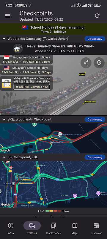 সিঙ্গাপুর এবং জোহর বাহরুর মধ্যে রিয়েল-টাইম ট্রাফিক আপডেট পান!