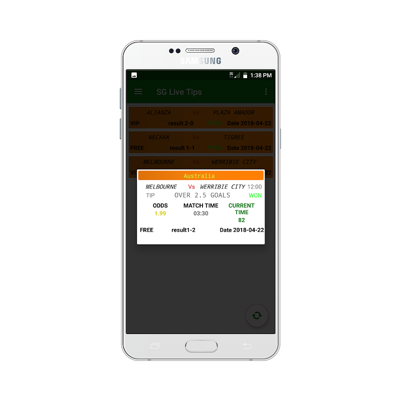 The app auto refreshes every minute for new football live tip!