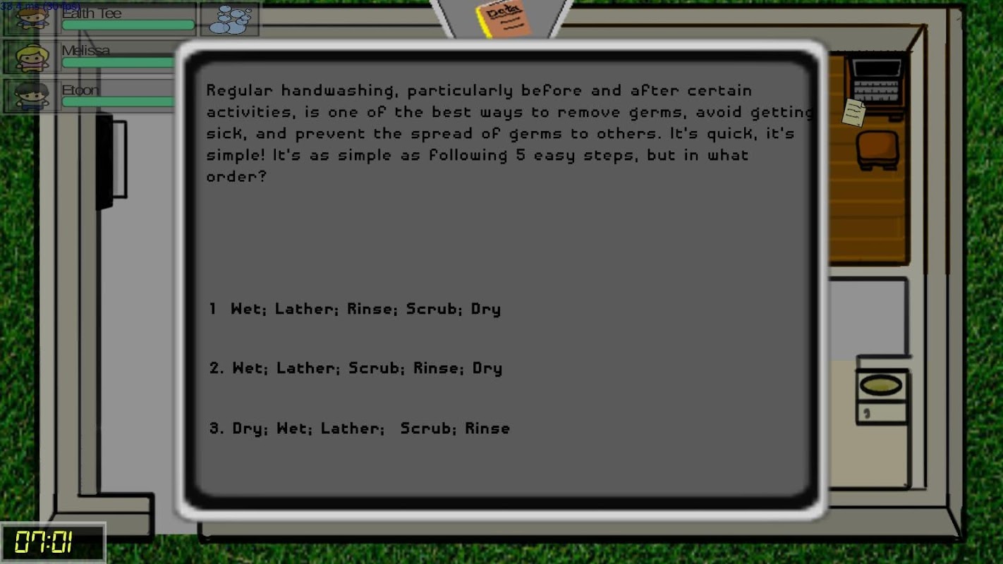 You are playing as HealthBot, the humanoid. Armed with a wealth of knowledge on healthy living, you are to guide and assist the family of Ealth Tee to live a healthy lifestyle. When you chance on them doing unhealthy activities, click on them to stop them from risking their health, thereafter, click somewhere else to resume the play. So Keep A Look Out, HealthBot!