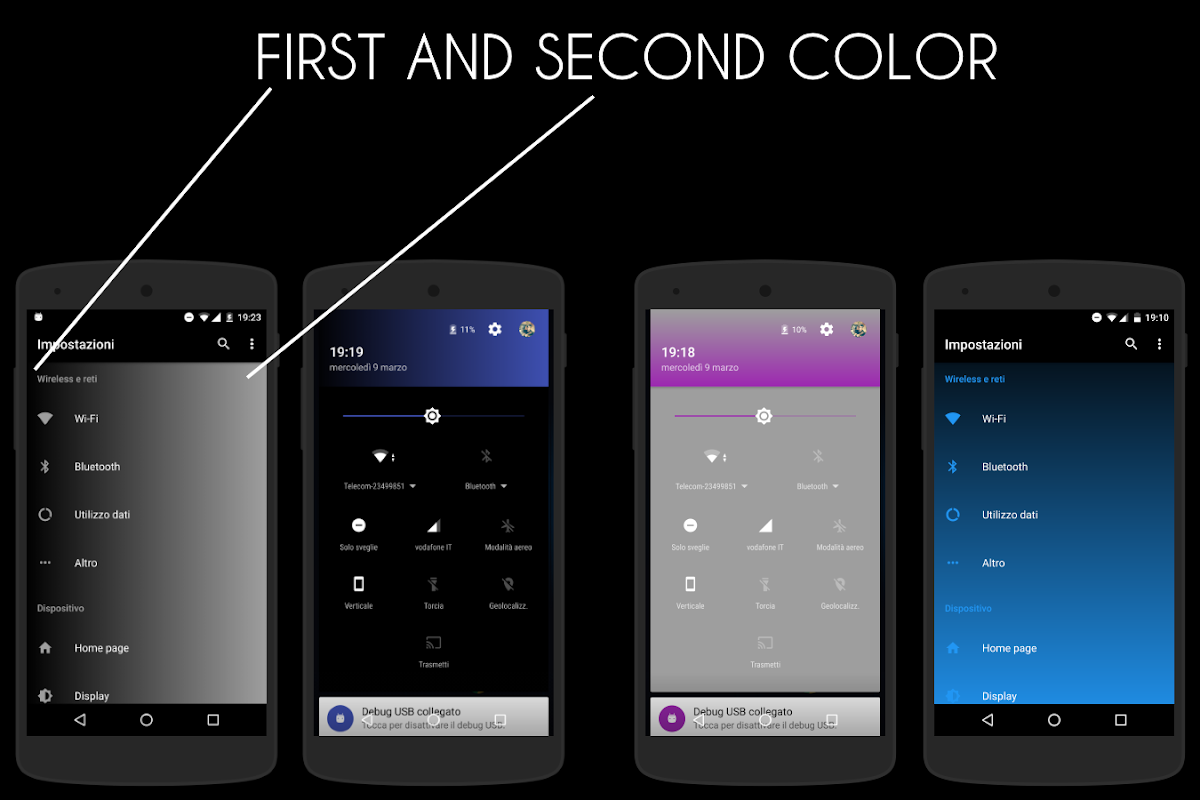 -FirstColor overlay: choose between 20 different colors to customize the first color of the shade (and other items). This is the black color of Shade UI theme. Black is suggested, but it's only a personal taste!