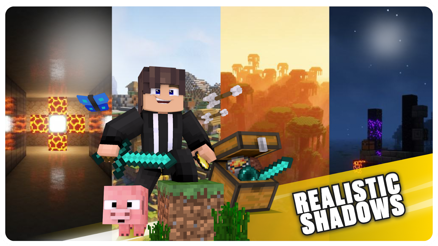 আমাদের MCPE অ্যাপে বাস্তবসম্মত গেমের জন্য Shader Mod বাস্তবসম্মত Minecraft -আল্ট্রা শেডার