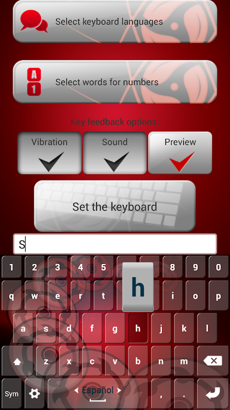 Sharingan Keyboard design app is a "cool keyboard skin theme" that will customize your phone the way you like! What Does The Sharingan Do? Take one look at swirls of tomoe in "red and black keyboard" and find out! These abstract themes with motives from Japan anime will personalize your device the best way and hypnotize you. Completely free of charge, you can change your keypad color and select from our "Sharingan theme" collection! Pick your favorite black and red keyboard background wallpaper and start texting! Sharingan symbol is known world wide, so why not set it as your sms themes, and enjoy its symbolism? Customize every part of your smartphone with "Sharingan eyes" – besides Sharingan wallpaper, this symbol can be perfect for Japanese keyboards design app! Take a good look at that magic eye and start typing faster than ever! Boys, if you are looking for a keypad color style change, these anime keyboard themes for Android™ are great for you! You have the option to select keypad design with different "Sharingan types" – key shapes and sounds! Also, our red keyboard with emoji will give you the chance for a quick reply! Send template messages with just a tap!