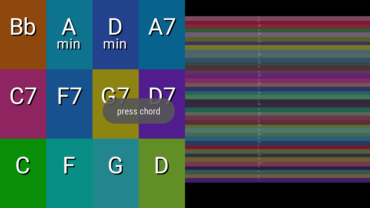 * Chords are "sticky" so you don't have to hold a chord to continue to strum it