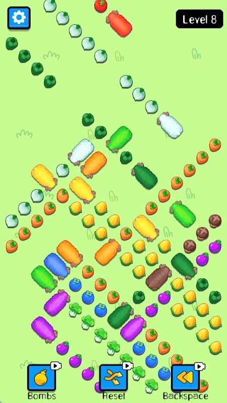 A puzzle game that involves moving small lambs to eliminate entire rows or columns of fruits and vegetables, until all fruits and vegetables on the interface are completely eliminated. It also includes gameplay such as catching eggs. Game objective: Reasonable operation, challenge levels!