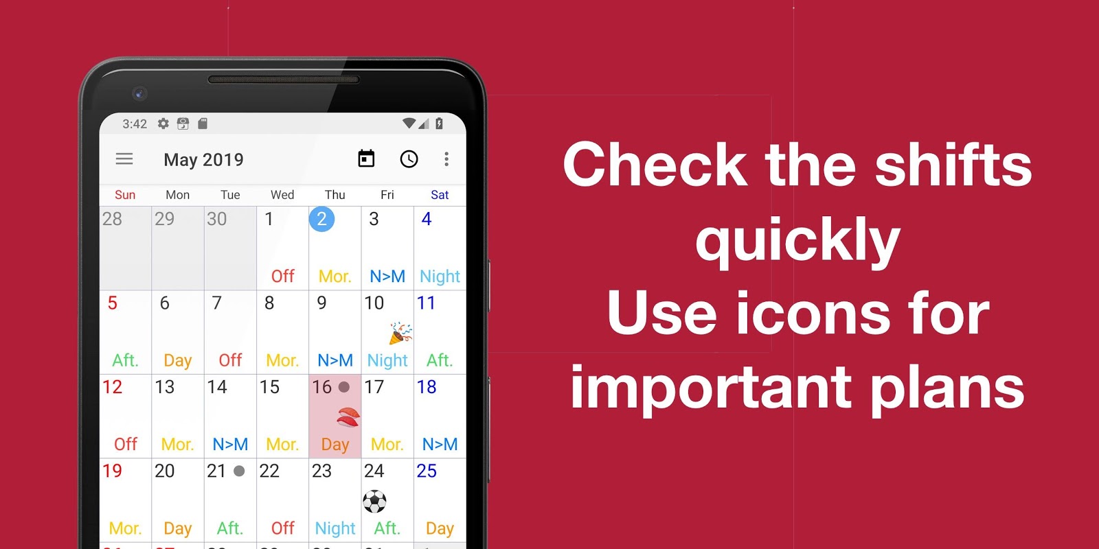 ● সুবিধাজনক শিফট ওয়ার্ক ক্যালেন্ডার বৈশিষ্ট্য (এই বৈশিষ্ট্যগুলি ব্যবহার করার জন্য বিনামূল্যে)