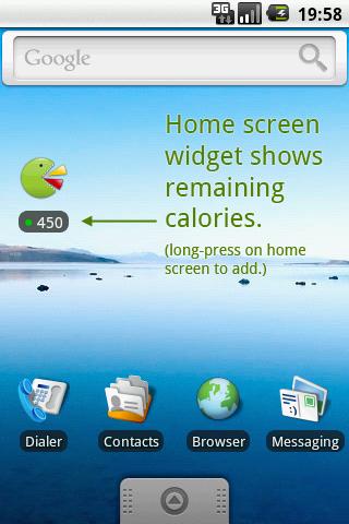 - আপনার ক্যালোরি মোট দ্রুত দেখার জন্য একটি বাড়িতে পর্দা উইজেট উপলব্ধ.