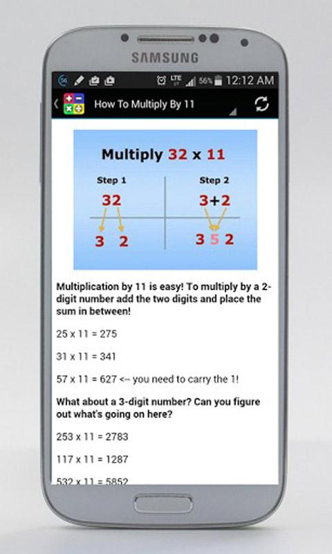 This tutorioal app wll show how you can amaze your friends with some simple tricks involving numbers. You don't need a long-sleeve shirt, a rabbit, or even know the slightest bit of magic – just a little math.Check out these amazing math tips and you’ll agree! how easy it is, you may just unleash the inner math whiz you never knew was in you.All these tricks has been collected from various sources which helps you to do match easily than never before.A good app for children to learn math tricks.