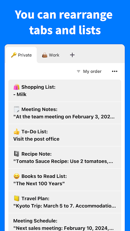আপনার আদর্শ কর্মপ্রবাহ অর্জনের জন্য ট্যাব এবং মেমোগুলি অবাধে টেনে আনুন এবং ছেড়ে দিন।