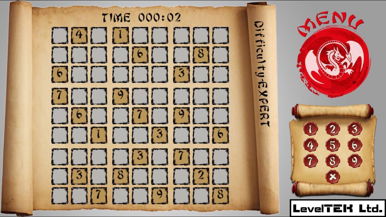 * 5 difficulty levels: Beginner Sudoku, Easy Sudoku, Medium Sudoku, Hard Sudoku, Expert Sudoku