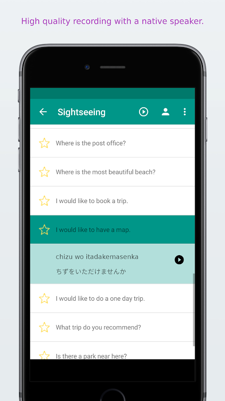 সকল জাপানি বাক্যাংশ এবং শব্দ আপনার কাছে উপস্থাপিত উচ্চারণগত এবং আসল জাপানি লেখায়। সেগুলো দেশীয় জাপান এর লোকদের দ্বারা রেকর্ডকৃত