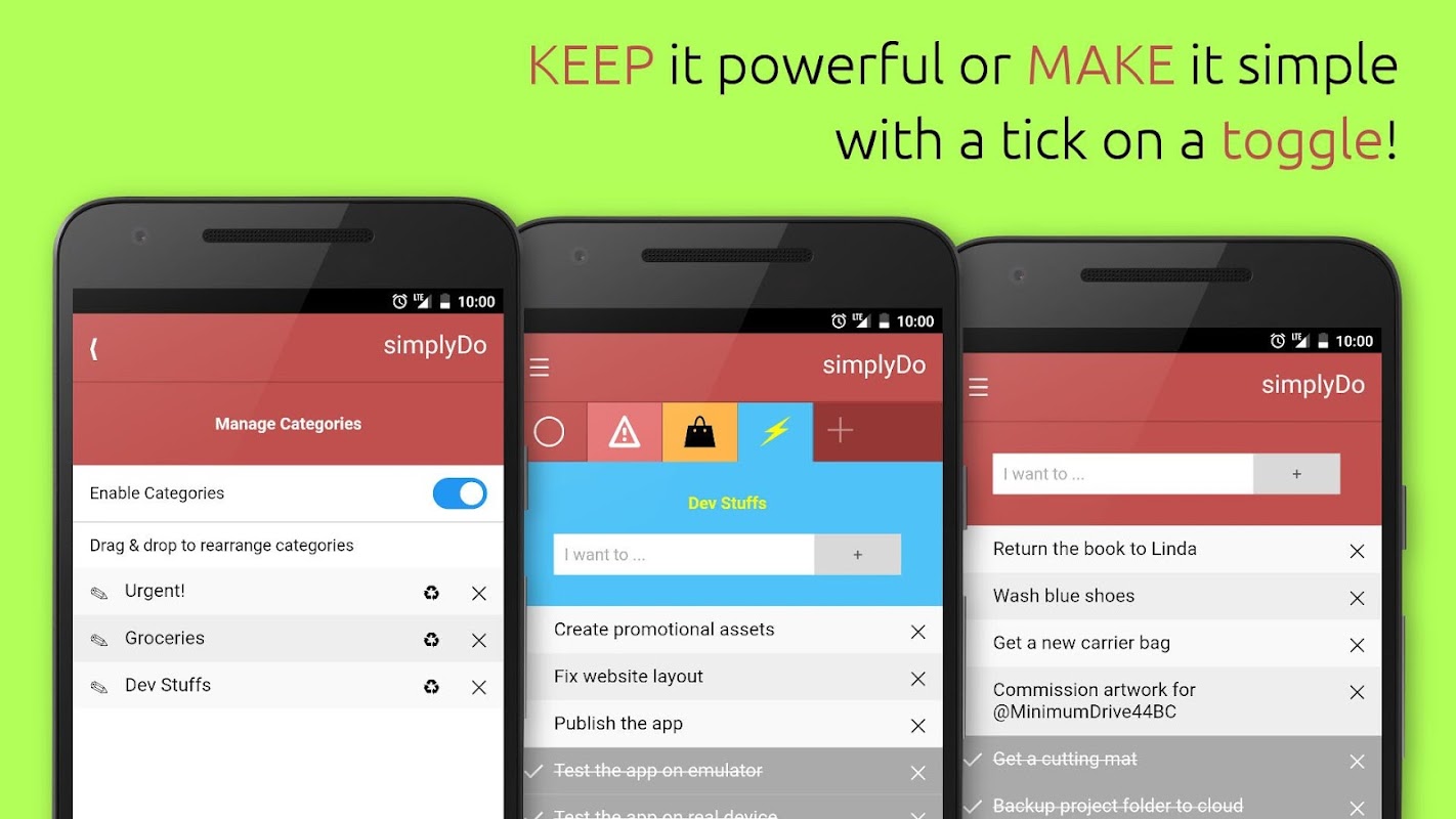 simplyDo is a free, open-source customizable to-do list app with category support.