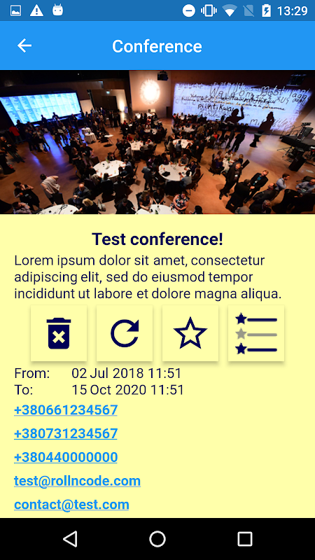 Skeder allows you to view conferences in a comfortable way and add own conferences. Entering conference, you will see all detailed info about it as long as all events and speakers of this conference. You can add conferences or events to favourites and see what place in time they take. Adding conference to Skeder is very simple. You can scan appropriate QR code for fast downloading or enter link to conference manually. If you want to create your own conference, you have to implement JSON with this structure : https://pastebin.com/raw/ESfpGgB1 and than share it with link or QR code with anyone you want.