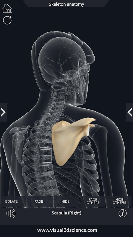 কঙ্কাল অ্যানাটমি প্রো। ব্যবহারকারীদের তা নির্বাচন করতে সক্ষম হবেন কঙ্কাল একটি গভীরতা বর্ণন দেয়, এক্স-রে দেখে, লুকান এবং কঙ্কাল শো অংশের সেইসাথে দৃশ্য রিয়েল টাইমে অ্যানিমেশন, সব শারীরস্থান মেয়াদের জন্য আঁকা বা পর্দায় সাদা এবং ভাগ স্ক্রিনশট, অডিও উচ্চারণ এবং আরও অনেক কিছু।