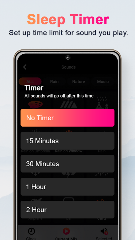 🟉 Schedule a sleep timer to automatically stop the sound.