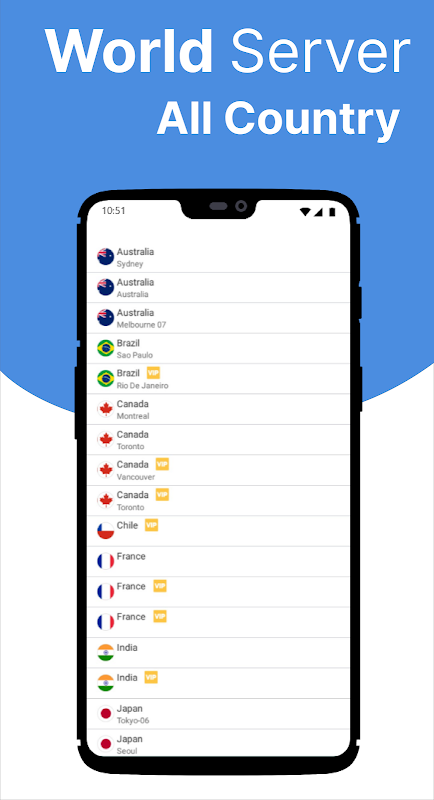 World Wide Server - Select the server country you want, almost all countries are in Slime VPN and will continue to grow.