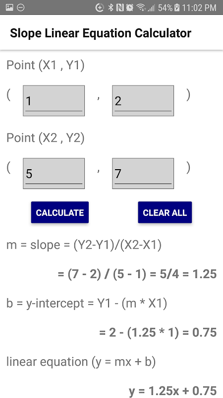 Convenient and quick Slope and Linear Equation calculator! Easy to use!