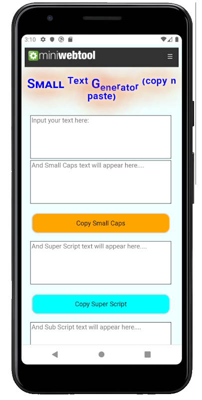 ছোট টেক্সট জেনারেটর small ⁿ your আপনার পাঠ্যকে ছোট ফন্টে উত্পন্ন করে।