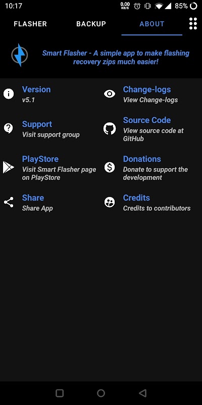 This Application is open source and contributions are most welcome. The source code of this app is available at https://github.com/SmartPack/SmartFlasher/.