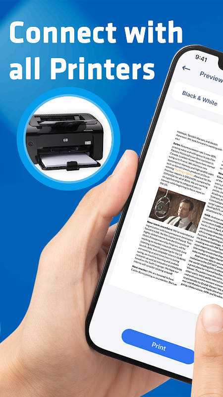 আপনার Android ফোনকে HP প্রিন্টার, Canon প্রিন্টার, Epson, Brother, Samsung, Lexmark এবং অন্যান্য Mopria-প্রত্যয়িত প্রিন্টারের সাথে সহজেই সংযুক্ত করুন। আপনি পিডিএফ ফাইল, নথি, ফটো বা ইমেল প্রিন্ট করছেন না কেন, এই অ্যাপটি মাত্র কয়েকটি ট্যাপের মাধ্যমে উচ্চ-মানের প্রিন্ট সরবরাহ করে।