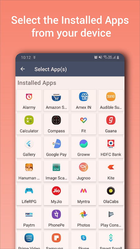 আপনি আপনার ডিভাইসে ইনস্টল করা আপনার পছন্দের অ্যাপ্লিকেশনটি চয়ন করতে পারেন এবং সেই নির্দিষ্ট অ্যাপের জন্য গতি এবং দিকনির্ধারণ করতে পারেন।