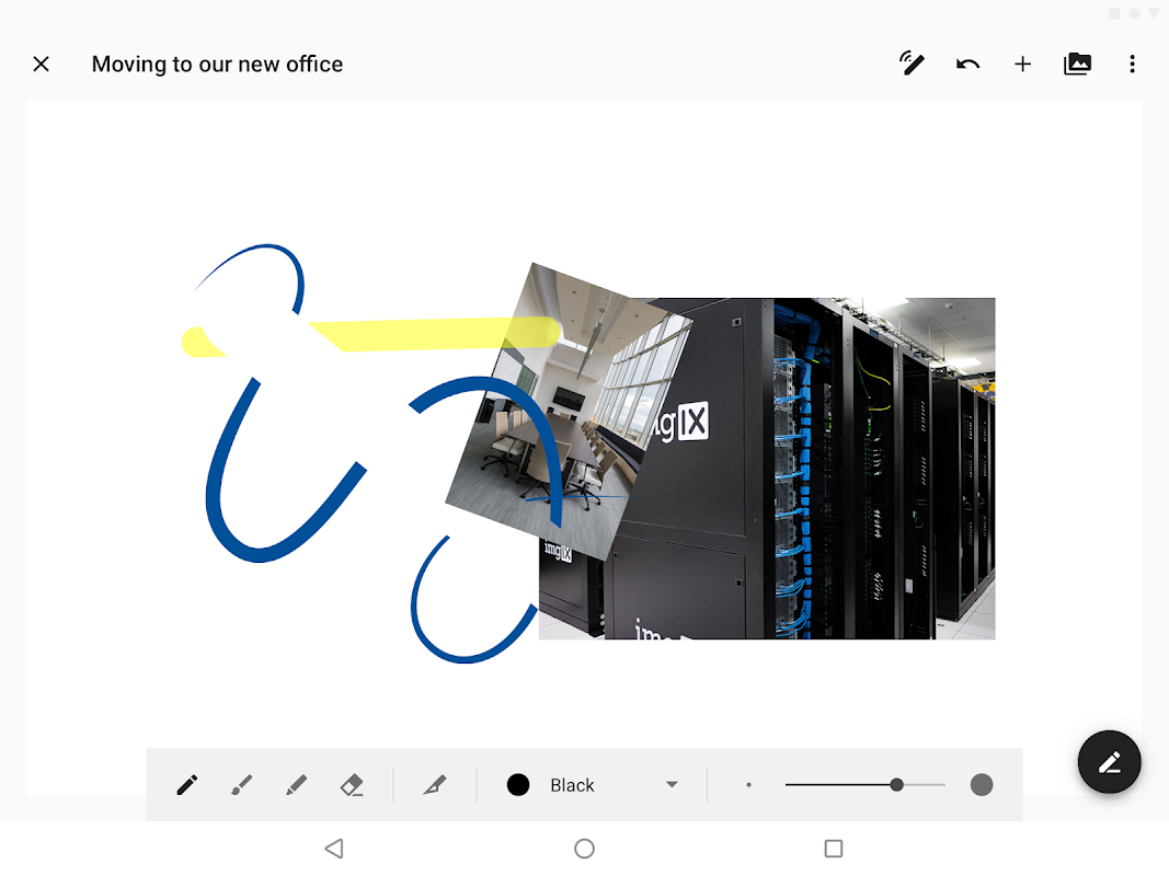 আপনি এবং আপনার সহকর্মী একই কর্মক্ষেত্রে রিয়েল টাইমে সহযোগিতা করতে পারেন। অঙ্কন এবং একাধিক বস্তুর সঙ্গে কাজ: ইমেজ, টেক্সট নোট বা স্টিকি নোট। সবকিছু সব অংশগ্রহণকারীদের সঙ্গে সিঙ্ক করা হয়।