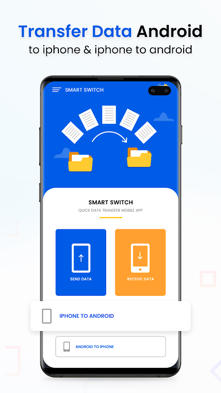 স্মার্ট সুইচ ফোন ট্রান্সফার অ্যান্ড্রয়েড থেকে iOS এবং iOS থেকে অ্যান্ড্রয়েডে ডেটা স্থানান্তর এবং বিষয়বস্তু স্থানান্তর সহজতর করার জন্য ডিজাইন করা হয়েছে৷ স্মার্ট সুইচ অ্যাপ আপনাকে একটি পুরানো ফোন থেকে নতুন ফোনে আমার ডেটা অনুলিপি করতে দেয়৷
