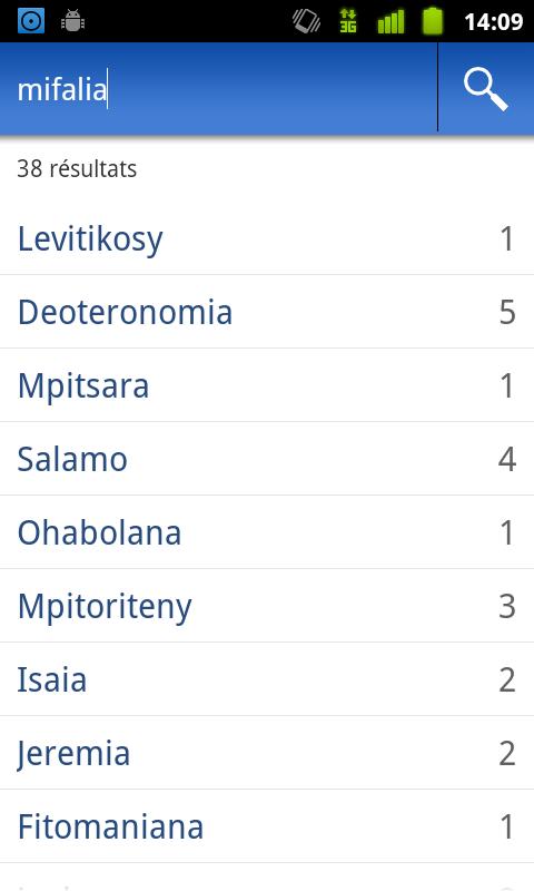 - Concordance : recherchez une expression dans la Bible ou dans le Fihirana (à venir)