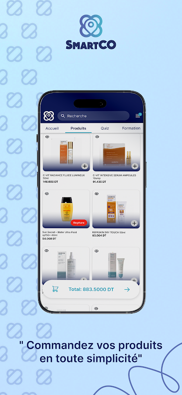 স্মার্টকো অ্যাপ বিনামূল্যের ফার্মেসি। Achats simplifies, gestion commandes optimisée.