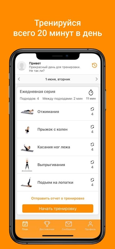 স্মার্ট ব্যক্তিগত প্রশিক্ষক আপনাকে অভিযোজিত করে এবং চিত্তাকর্ষক ফলাফল অর্জনের জন্য অনুকূল লোড স্তরটি সামঞ্জস্য করে। প্রতিটি অনুশীলনের পরে, আপনি প্রতিক্রিয়া জানান, এবং প্রোগ্রাম কার্যকরভাবে ওজন, পুনরাবৃত্তির সংখ্যা এবং অনুশীলনের ক্রম গণনা করে।
