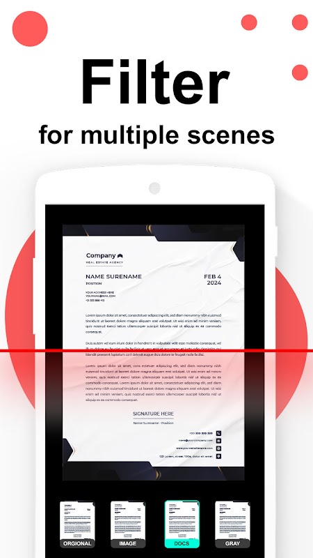 উন্নত করুন এবং সম্পাদনা করুন: অন্তর্নির্মিত সম্পাদনা সরঞ্জামগুলির সাথে আপনার স্ক্যানগুলিকে সুন্দর করুন৷ পঠনযোগ্যতা এবং স্বচ্ছতা অপ্টিমাইজ করতে উজ্জ্বলতা, বৈসাদৃশ্য এবং রঙ সামঞ্জস্য করুন।