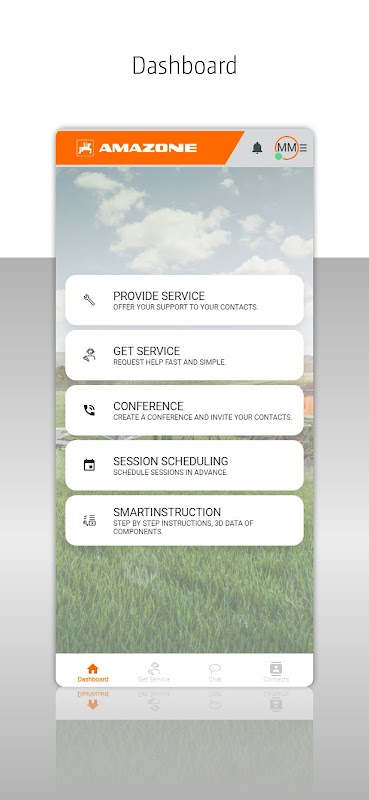 Amazone সার্ভিস অ্যাপ অন-সাইট টেকনিশিয়ান থেকে এক বা একাধিক দূরবর্তী বিশেষজ্ঞদের লাইভ ভিডিও এবং ভয়েস যোগাযোগ প্রদান করে। Amazone পরিষেবা অ্যাপের জন্য একমাত্র প্রয়োজন হল একটি ট্যাবলেট বা একটি ল্যাপটপ যার একটি ক্যামেরা এবং একটি ইন্টারনেট সংযোগ। ইমেজ গুণমান বিশেষভাবে সেবা এবং রক্ষণাবেক্ষণ জন্য অপ্টিমাইজ করা হয়. সমস্ত বিষয়বস্তুর সম্পূর্ণ নিয়ন্ত্রণ রাখতে, Amazone পরিষেবা অ্যাপটি সর্বশেষ এনক্রিপশন প্রযুক্তির সাথে সুরক্ষিত।