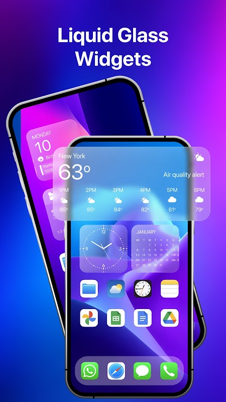 - iOS-অনুপ্রাণিত উইজেটগুলির বিস্তৃত নির্বাচন (ঘড়ি, ক্যালেন্ডার, আবহাওয়া, এক্স-প্যানেল এবং আরও অনেক কিছু)