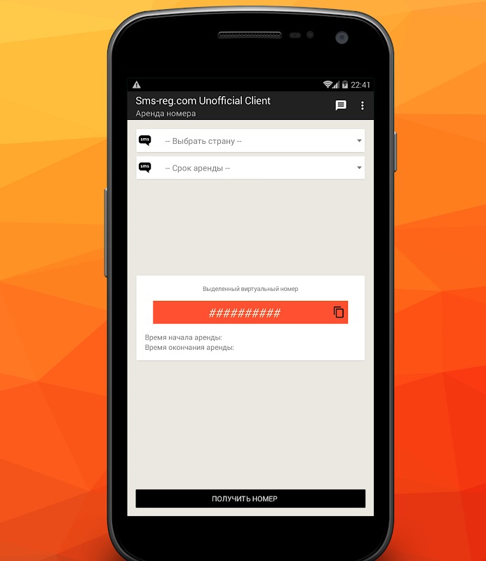 অ্যানোফিসিয়াল ক্লায়েন্ট অ্যান্ড্রয়েড, ভার্চুয়াল নম্বর ভাড়া পরিষেবা sms-reg.com।