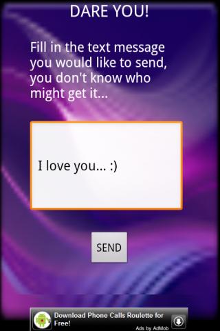 Just feel in the text message content, push the button and send the message to a random contact... Enjoy! ha ha ha