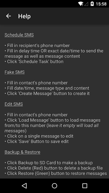 - create any type of fake messages on your phone, it can be sent or receive, read or unread or even fail, etc