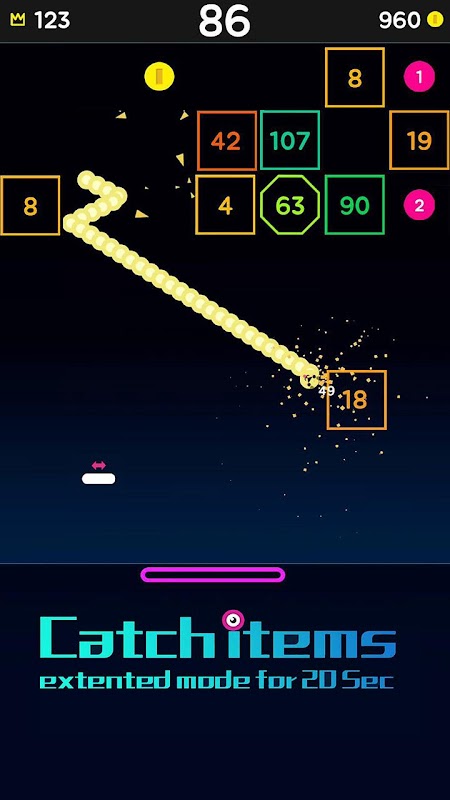 Swipe left and right, manipulate the baffle, bounce a snake consisting of small balls, and constantly bounce and hit the bricks!