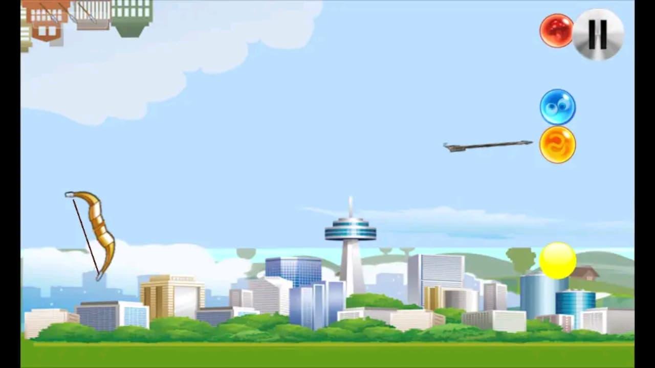গেমটি ধনুকের সাহায্যে বুদ্বুদগুলিতে তীর চালাচ্ছে