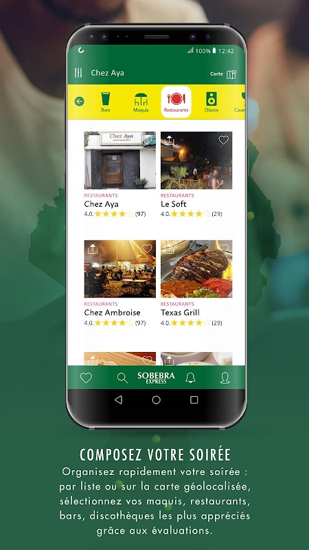 এটি সোবিবার পণ্যগুলির প্রতিষ্ঠানের বিক্রয় ও পয়েন্টগুলি (রেস্তোঁরা, বার, নাইট ক্লাব ইত্যাদি) তালিকাভুক্ত করে এবং ভূ-স্থানের জন্য আপনাকে সবচেয়ে কাছের সেরা পরিকল্পনার প্রস্তাব দেয়!