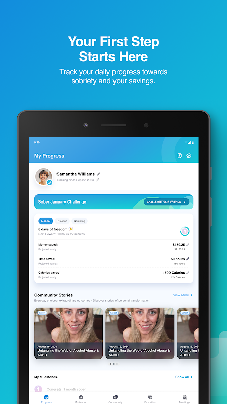 মাইলস্টোন ট্র্যাকার: কৃতিত্বগুলি উদযাপন করুন এবং অনুরূপ শান্ত যাত্রায় অন্যদের সাথে সংযোগ করুন।