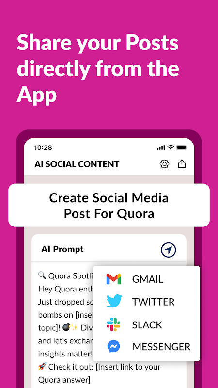 এআই সোশ্যাল মিডিয়া কন্টেন্ট জেনারেটরের সাথে অনায়াসে আপনার সোশ্যাল মিডিয়া উপস্থিতি বাড়ান! আপনাকে LinkedIn, Instagram, Facebook, Quora, TikTok, Twitter, Reddit, Tumblr, বা Pinterest-এর জন্য আকর্ষণীয় পোস্ট তৈরি করতে হবে কি না, এই শক্তিশালী অ্যাপটি আপনাকে কভার করেছে।