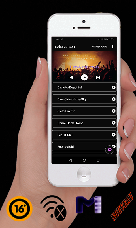 يحتوي تطبيقSofia Carson على أفضل أغانيMP3 بدون الانترنت بجودة عالية.