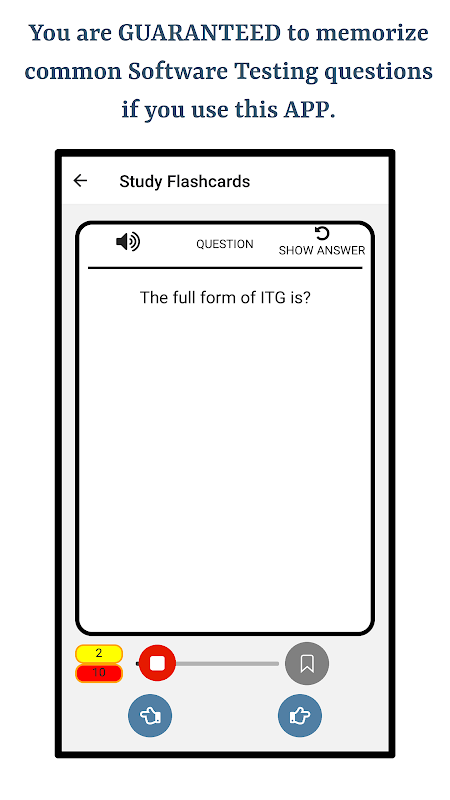 এই অ্যাপটি সফ্টওয়্যার টেস্টিং সম্পর্কে জানার জন্য একটি দুর্দান্ত সংস্থান৷ অ্যাপটি খুব অল্প সময়ের জন্য অধ্যয়ন করে ব্যবহারকারীদের সাধারণ সফ্টওয়্যার পরীক্ষার প্রশ্নগুলিকে নিখুঁত বোঝার জন্য তৈরি করা হয়েছে৷ অধ্যায়, বিভাগ, অধ্যয়ন মোড এবং কুইজ মোডগুলিতে অডিও কার্যকারিতা এবং বুকমার্কিং অ্যাপ জুড়ে উপলব্ধ।